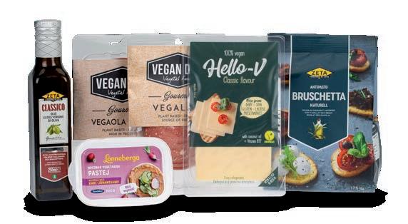 Innhold: Olivenolje Ex Verg Classiso 0,25l, Bruschetta naturell 175g, Vegan Deli Vegalami 90g, Vegan Deli Vegaola 90g, Hello-V skivet gulost 140g, Vegetarpostei 200g