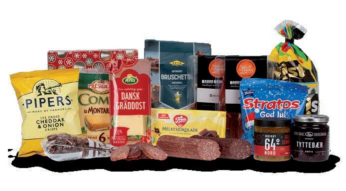 Innhold: Julegløgg 500ml, Pastrami skåret 100g, Stratos Julefigurer 140g, Bruschetta naturell 175g, Røkt laks skivet 100g, Røros Juleost 90g, President Snacking Brie 180g, Lammerull skivet 100g, Julemiks merkesjokolade biter 100g, Fårepølse 270g, Kyllingpålegg m/urter skivet 100g, Varmrøkt pepper/krydder laks i bit ca. 300g, Pepperkaker 150g, Julesennep 200g, Pipers Cheddar & Onion 40g, Holmens brente mandler 100g, Okserull skivet 100g, Ringstad fenalår 100g, Hamlet Julekonfekteske m/sløyfe 125g, Bresola spekeskinke av okse 90g.