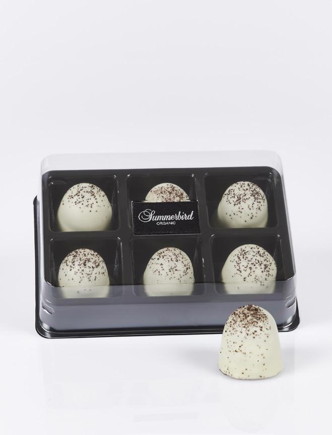 The award-winning Summerbird Grand Cru cream puff first saw the light of day in 2002 and established the cream puff as a gastronomic speciality. Then, as now, the recipe was simple: A marzipan base of stoneground Mediterranean almonds topped with Italian meringue flavoured with an abundance of vanilla and coated with a thick layer of dark chocolate Amazonas 61%. A cream puff where the pure and luscious marzipan, airy vanilla meringue and fruity dark chocolate meet in a harmonious and perfect balance.