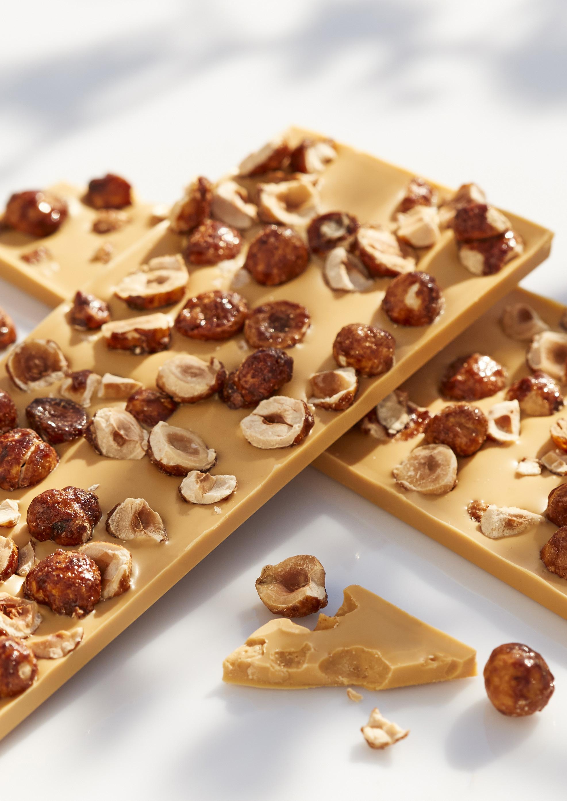 An utterly unique chocolate with a golden amber colour, a silky-smooth texture and a caramelised taste reminiscent of the classic French dessert, crème brûlée. The chocolate is perfect for eating, but also ideal for desserts and baked goods.