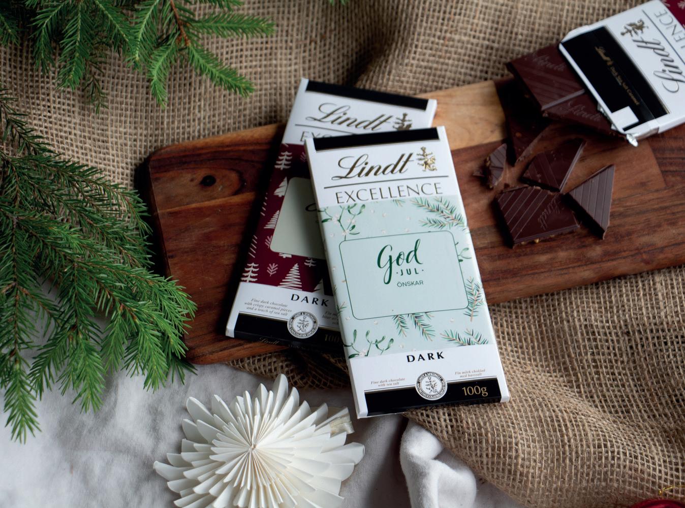 Lindt Excellence 100 grams sjokoladeplate i tre smaker. Ditt budskap trykkes på en sleeve som vi fester rundt sjokoladeplaten. Utsøkt sjokolade og et kjent varemerke gir en garantert fornøyd mottaker.