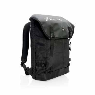 Polyurethane • Volume 23L. • Laptop/Tablet pocket size 16" • PVC free Size 30 x 12 x 43 cm Printtechnique Screen transfer 5,87 kg. Benchmark: 8,32 kg.