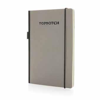Standard hardcover PU A5 notebook with stylus pen Polyurethane • A5 size • Hardcover • Lined pages • 144 pages • Cream paper • 70 g/m2 paper Size 1,3 x 14,5 x 21 cm Printtechnique Pad print