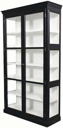 Vitrineskab i helmalet, massivt træ. Hyldemål: L: 84,5 x D: 34,5 cm. Højde imellem hylder øverste og nederste 37 cm, de 3 hylder midtpå 33 cm. Kommer samlet i en colli, vægt 67 kg.