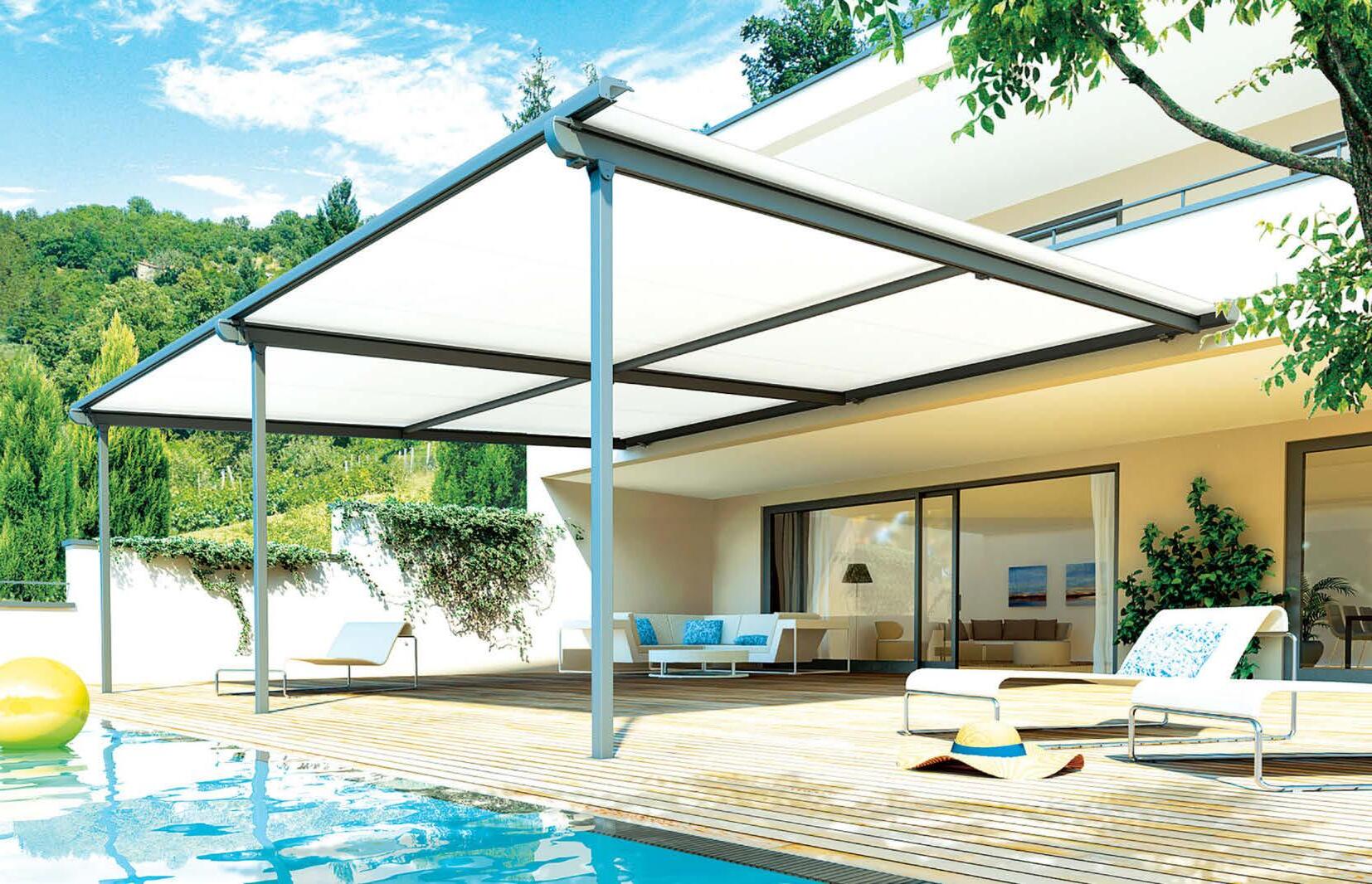 4 m. markise i hellukket hvid aluminiumskasse med motor samt 2 fjernbetjeninger. 3 m. udfald. Monteret med kraftig, overfladebehandlet, vandafvisende, sandfarvet polyesterdug. Markisen kan også styres manuelt. 2 beslag medfølger samt stang til manuel udrulning. Tilbud så længe lager haves.