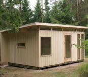 Stort udvalg af træpavilloner. Type Ærø med dobb. dør og 4 dobb. vinduer. Kampagne kr. 19.735 incl. levering. Tagshingels. kr. 2.065. Rabatkode Y191