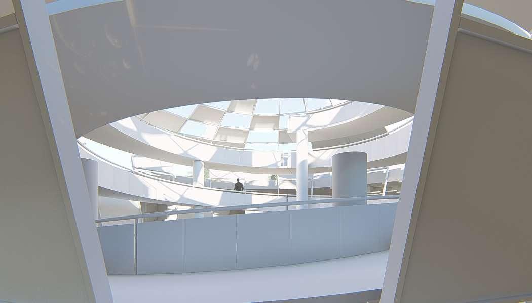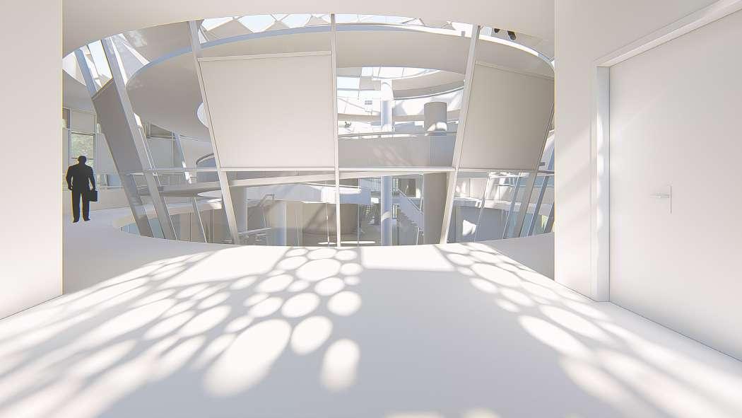 J’ai pour ma part pris le parti de m’implanter dans le parc avec un centre scientifique faisant le lien entre la place du musée et l’université de Darmstadt. L’idée était de crée un bâtiment dans les arbres et d’exploiter le potentiel qu’offre le parc en terme de vue.