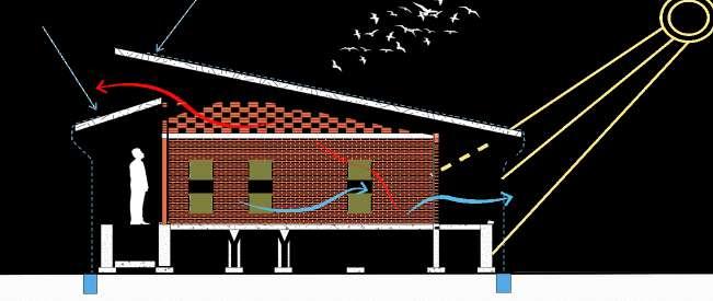 10.Toiture en chaume 9.Pannes en bois 8.poutre en bois d’eucalyptus 7.Poteau principal croisé 6.Pied de poteau en acier 5.Poteaux secondaires croisés 4.Plancher en béton 3.système de poutre en bois d’eucalyptus 2.Elément en acier 1.Pieux en béton 10 8 7 9 6 5 4 3 2 1