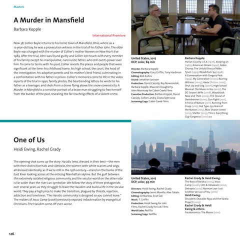 A Murder in Mansfield Barbara Kopple International Premiere Now 38, Collier Boyle returns to his home town of Mansfield, Ohio, where as a 12-year-old boy, he was a prosecution witness in the trial of his father John. The elder Boyle was charged with the murder of Collier’s mother Noreen on New Year’s Eve 1989. After the trial, John was found guilty and Collier lost touch with every member of his family except his manipulative, narcissistic father, who still exerts power over him. To come to terms with his past, Collier revisits the places and people that were significant at the time: his childhood home, his high school, the court, the head of the investigation, his adoptive parents and his mother’s best friend, culminating in a confrontation with his father in prison. Collier’s memories come to life in the video reports of the trial in 1990, family photos, the heartrending letters he wrote to his father as a teenager, and shots from a drone flying above the snow-covered city. A Murder in Mansfield is a sensitive portrait of a brave man struggling to free himself from the burden of the past, revealing the far-reaching effects of a violent crime.