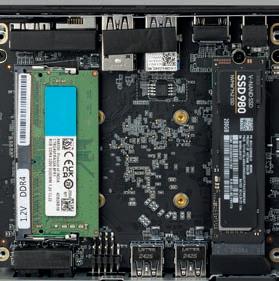 Udstyret med Intel N100 processor (12. generation, Alder Lake-N) Dual-Display-understøttelse: 1× HDMI 2.0b, 1× DisplayPort 1.4 Gigabit-Ethernet, Wi-Fi-forberedt (M.2-sokkel med forudinstalleret antenne) 4× USB 3.2 Gen 2 (10 Gbit/s), 2× USB 2.0 Understøtter op til 16 GB DDR4 SO-DIMM 1× M.2-2280 (NVMe/SATA), 1× M.2-2230 for WLAN Væg-/VESA-beslag medleveres
