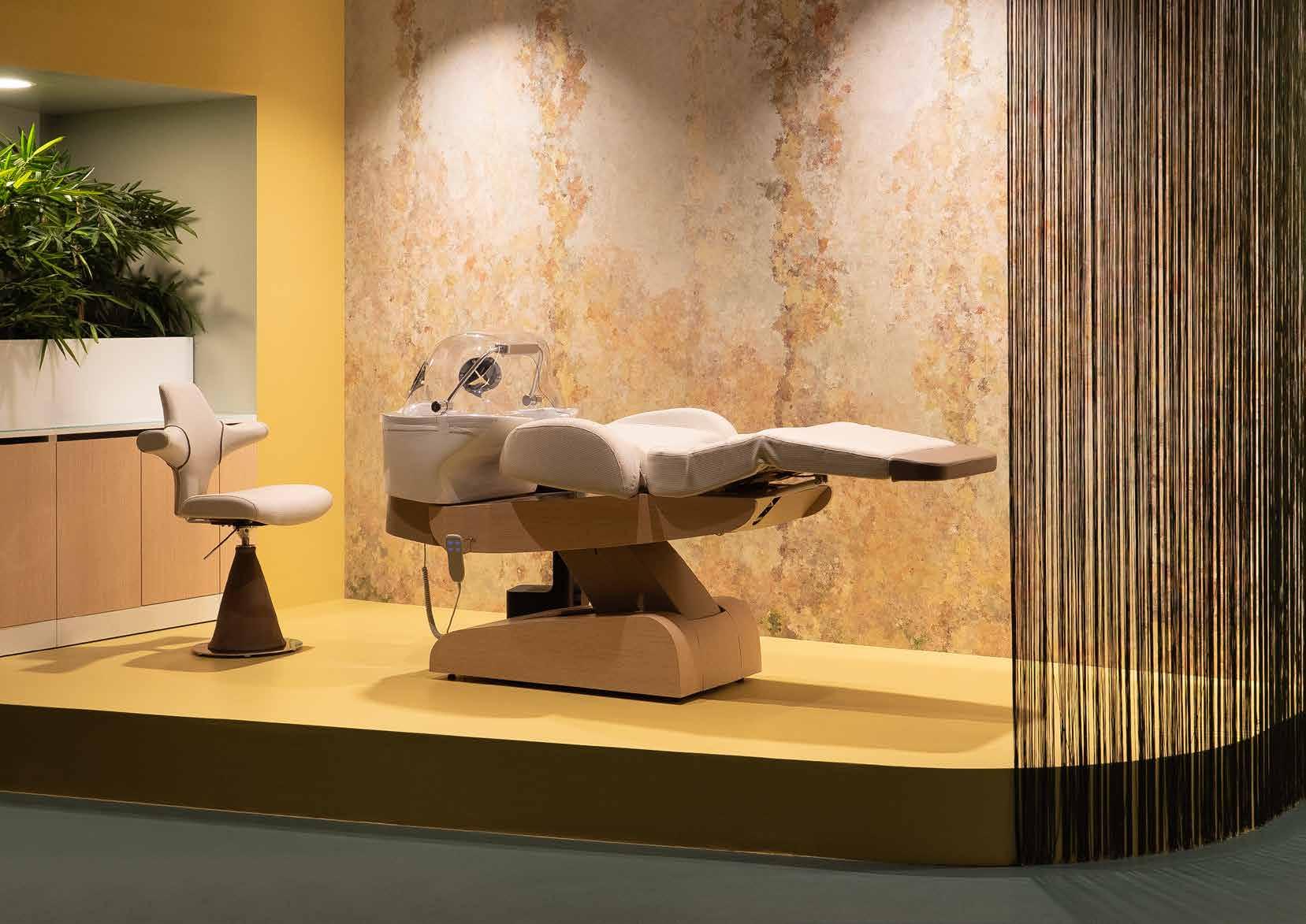 Lettino multifunzionale progettato per soddisfare le esigenze di parrucchieri ed estetisti.
