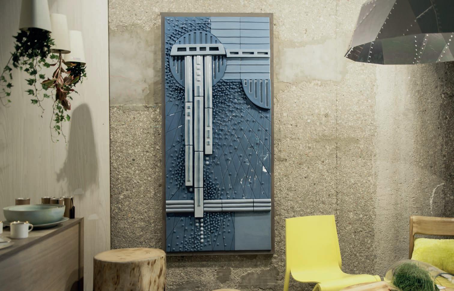 14. Żyrandol projektu Heleny i Lecha Grześkiewiczów zrekonstruowany przez Dorotę i Malwinę Grześkiewicz na wystawę „Polska. Kraj folkloru” w Zachęcie Narodowej Galerii Sztuki, 2016 r., fot. Malwina Grześkiewicz. Źródło: archiwum rodziny Grześkiewiczów. 15–16. „Kompozycja Niebieska”, obraz ceramiczny, Dorota i Malwina Grześkiewicz, 2016 r., - obecnie w zbiorach Oddziału Sztuki Nowoczesnej Muzeum Narodowego w Gdańsku, fot. Malwina Grześkiewicz. Źródło: archiwum rodziny Grześkiewiczów.
