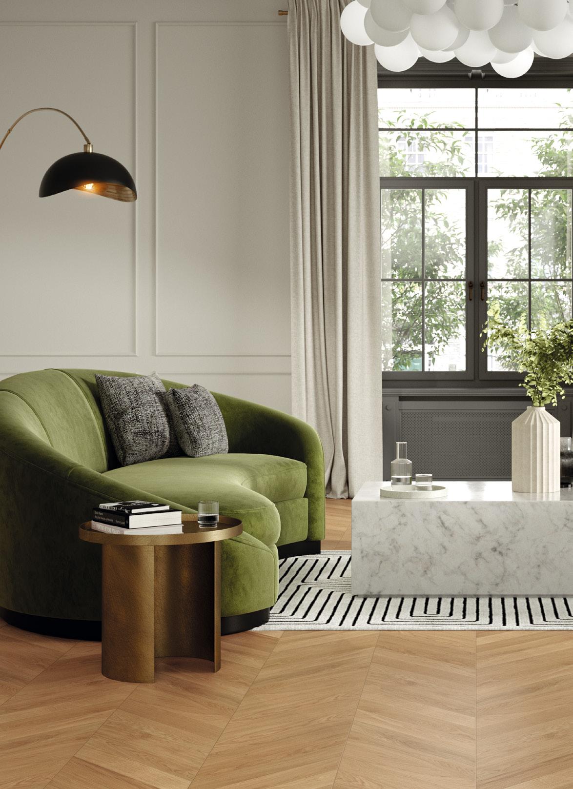 Chevron-parket is een traditionele vloer, maar dankzij de hedendaagse kleurenrange biedt onze nieuwe collectie ook een moderne uitstraling. Na het leggen vormen de blokken een doorlopende ‘v’, het meest herkenbare kenmerk van de Chevron-vloerbedekking.