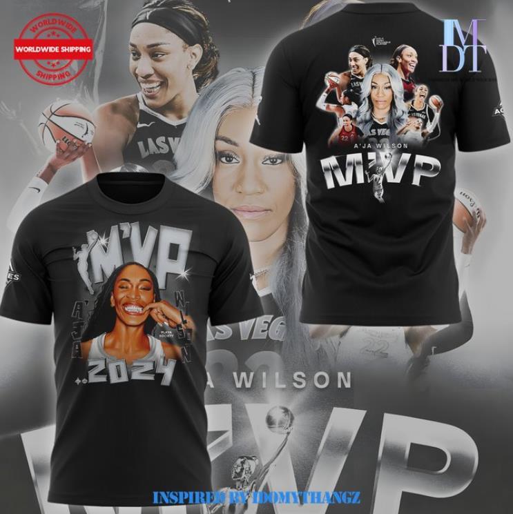 The A’ja Wilson MVP Limited Edition 2024 Black T-Shirt is perfect for Las Vegas Aces fans who want to celebrate their favorite player in style. Its sleek black design, combined with bold MVP graphics, make it a fashionable yet meaningful piece of apparel. Whether you’re a