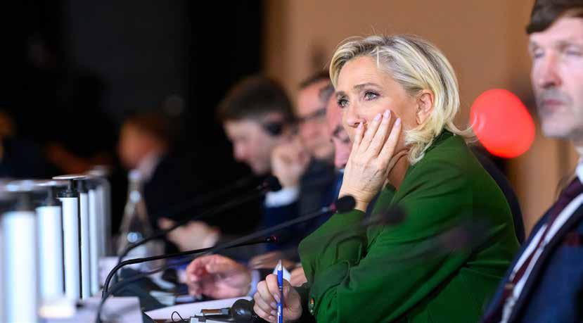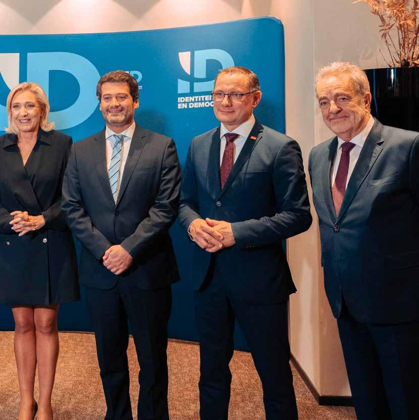 Geert Wilders with Tom Van Grieken and Marine Le Pen at the ID Party leaders’ meeting in Brussels