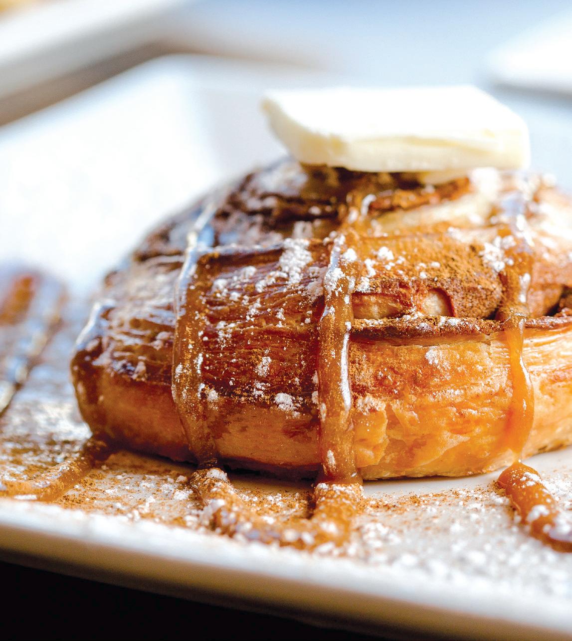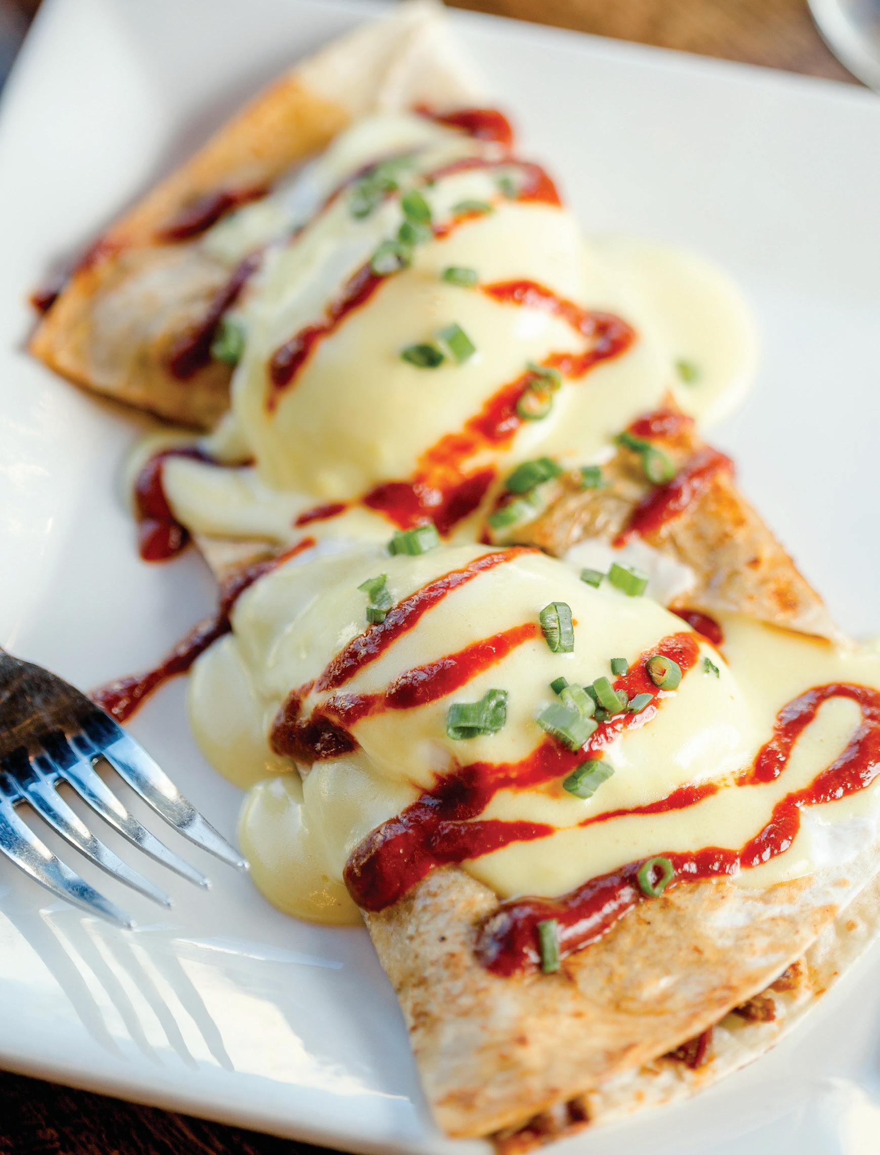 Meat lovers must take aim at the Short Rib Quesadilla Benedict, which is a hearty breakfast totally worth writing home about. The flavorful mixes of meaty, pulled pieces of roasted short rib melding with two folded, Cheddarcheesy quesadilla triangles, are deepened with the egg white and yolk plus hollandaise, lovingly emboldened by a mild pepper sauce. It’s that total combination of soft and chewy textures,