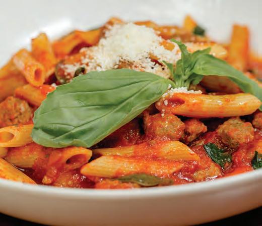On the red side of sauces, diners can indulge in Russo’s Pasta with Mini-meatballs in tomato sauce. That fulsome “gravy” balances quality crushed tomatoes with just enough sweet to enhance every type of pasta, from ziti to spaghetti. Plus, you’ll likely find yourself wondering how on earth such tiny little meatballs can pack so much flavor into every morsel. Talk about a wonderful mystery!