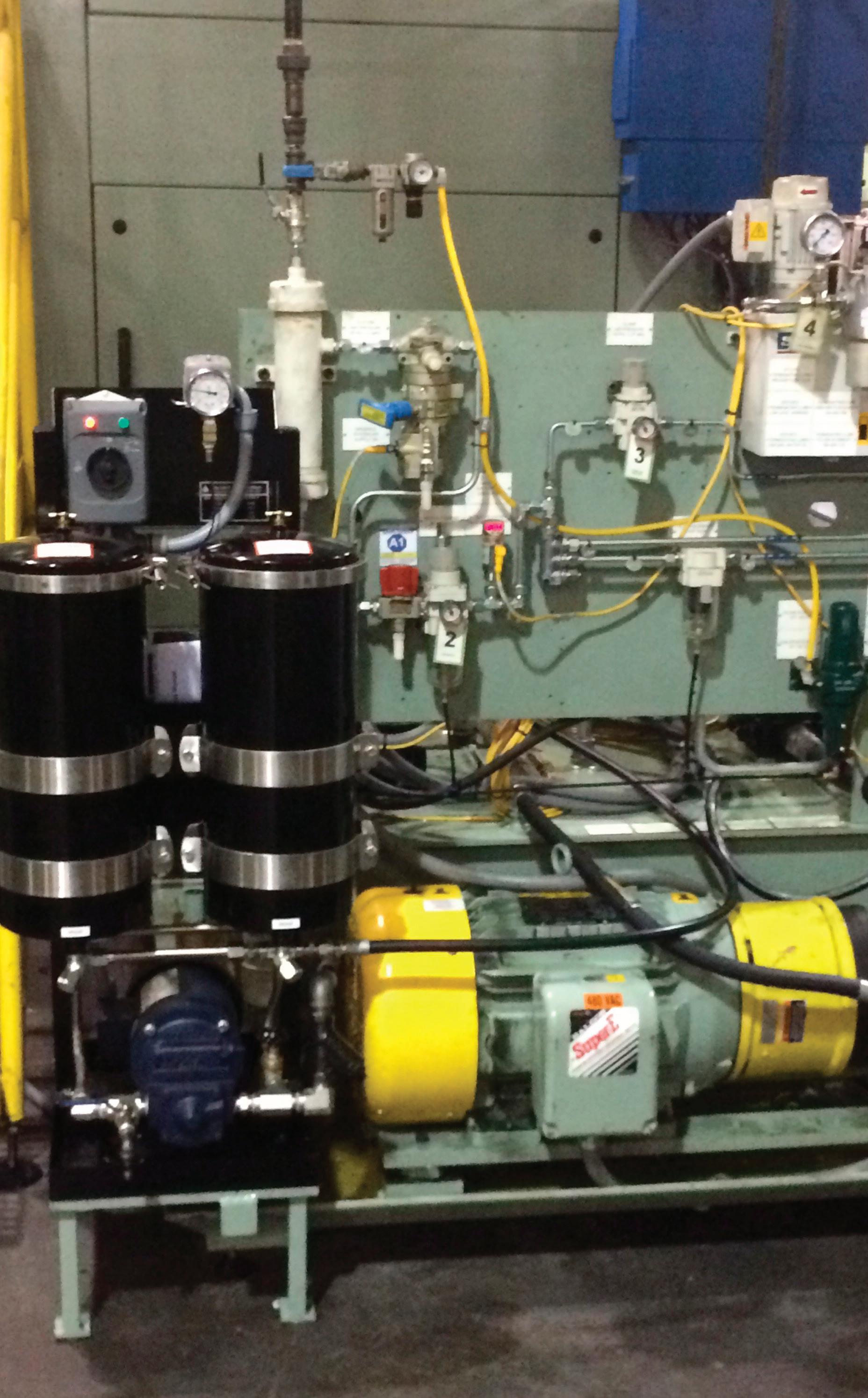 The company prides itself on making high-quality products, and it was clear that the contamination issue had to be addressed. Changing the oil only provided temporary relief. Replacing the high-pressure filters every seven to ten days – at $420 each – was not able to maintain the necessary ISO cleanliness standards for the servo valves. The situation demanded action.