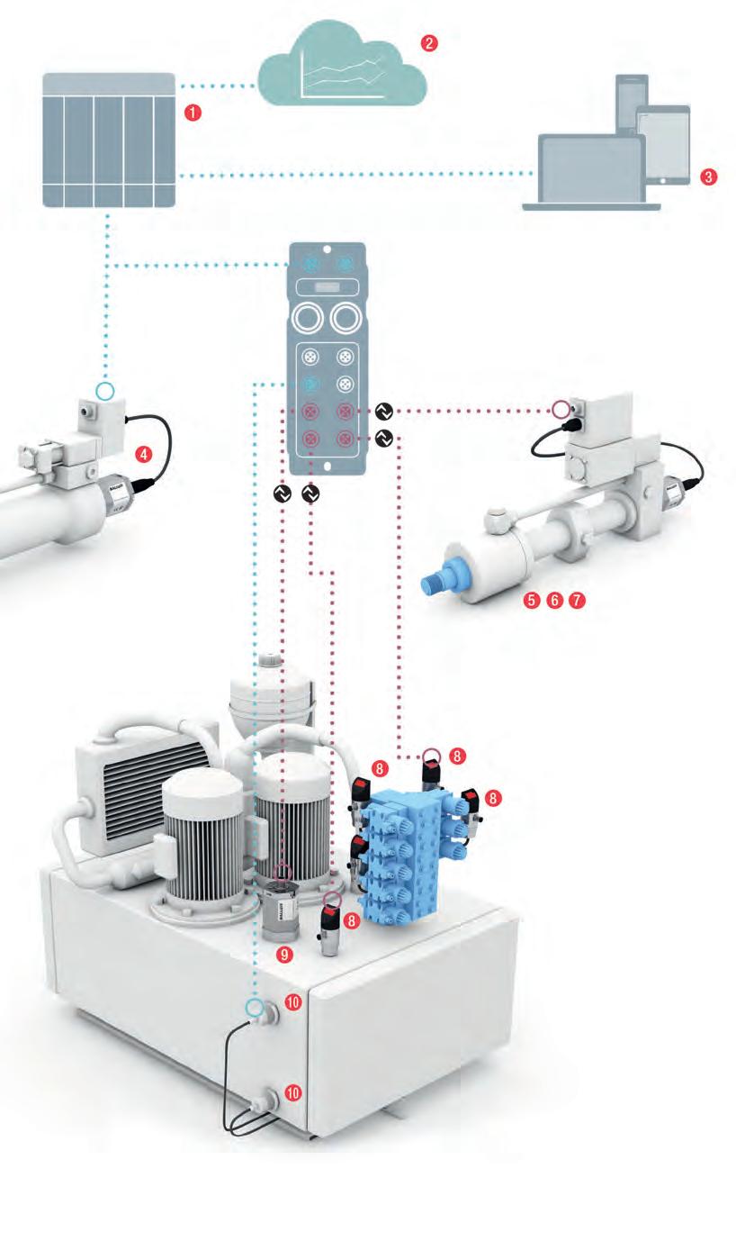 In 2021, 10 years on from the first tangible progress in Industry 4.0 and IIoT, we find ourselves in a rapidly developing networked industrial landscape. Components are becoming smaller, creating space that can be used to add multipurpose condition monitoring sensors to hydraulic components and processes. These can, for example, acquire and process data on vibration, relative humidity, contact temperature, and ambient pressure. The components then process this information in the sensor and transmit it via IO-Link to the host system, where it can be further analyzed, visualized, and used to create models.