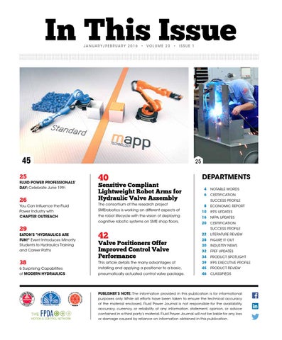 PUBLISHER’S NOTE: The information provided in this publication is for informational purposes only. While all efforts have been taken to ensure the technical accuracy of the material enclosed, Fluid Power Journal is not responsible for the availability, accuracy, currency, or reliability of any information, statement, opinion, or advice contained in a third party’s material. Fluid Power Journal will not be liable for any loss or damage caused by reliance on information obtained in this publication.
