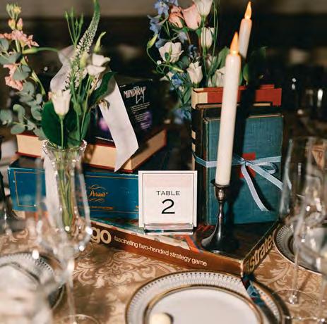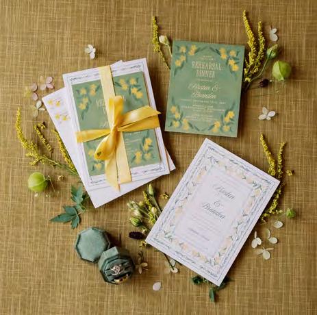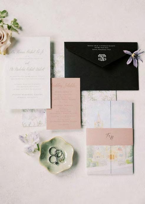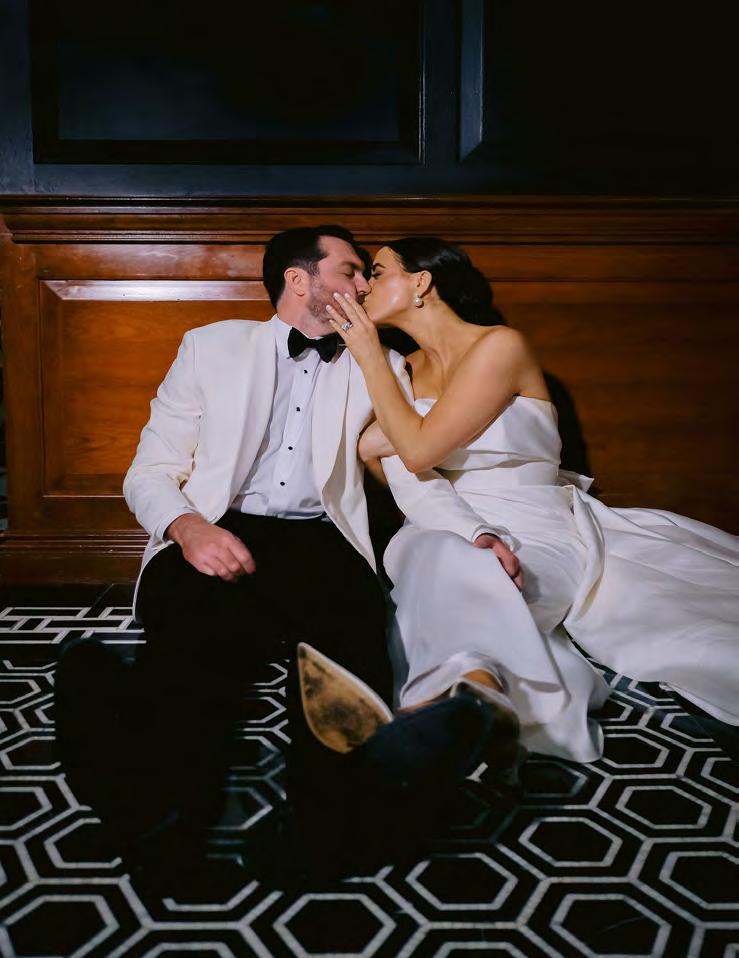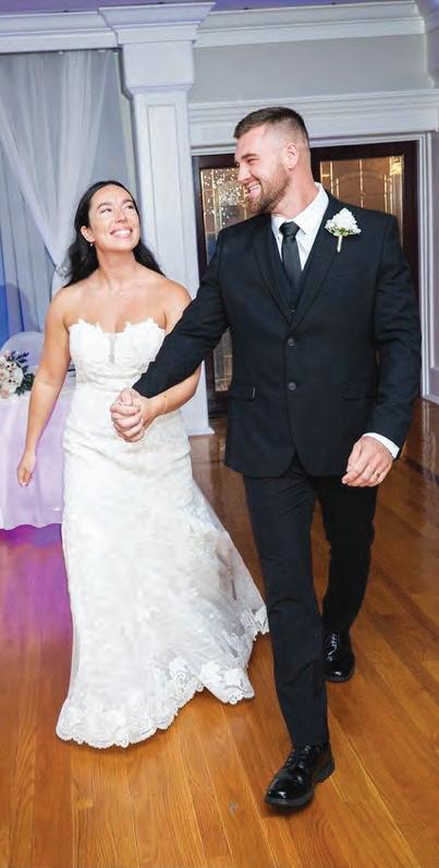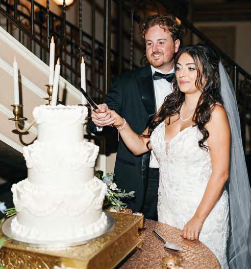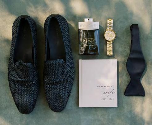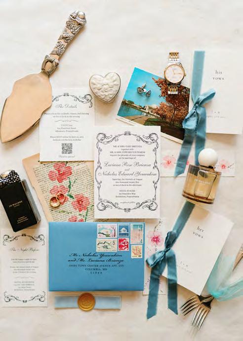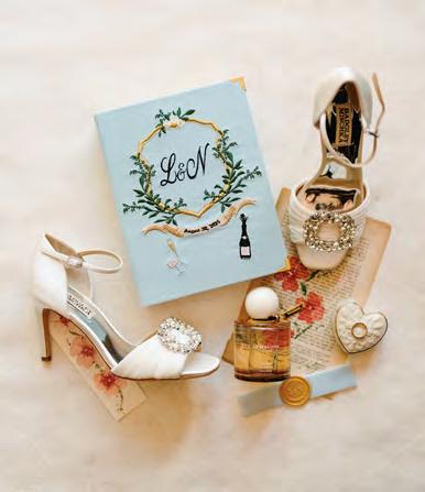 Five years after meeting, the two exchanged vows at a beautiful venue lush with bountiful vines that satisfied their dreams of a European-vineyardstyle wedding, right here in the state they grew up in. A talented caterer honored Caribbean and Italian roots with fusion cuisine including jerk chicken over garlic parmesan risotto, a delicious reflection of their story. Memorial banners and a bouquet locket remembered lost loved ones, along with a table showcasing the wedding photos of generations past.