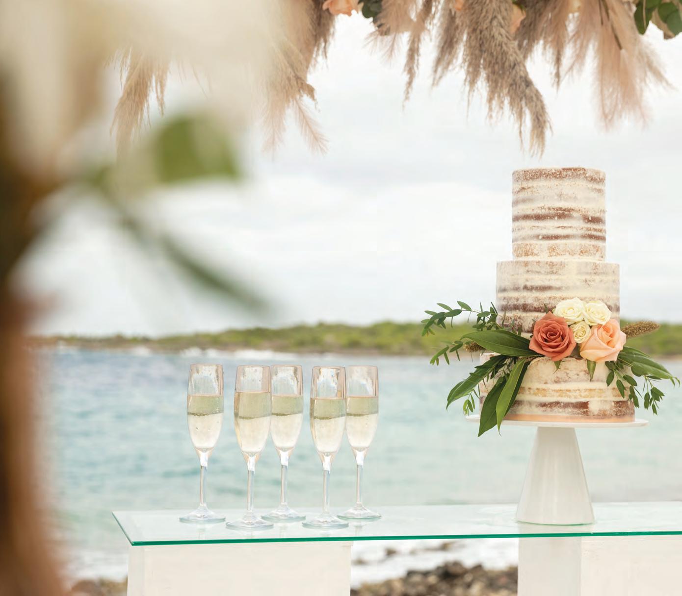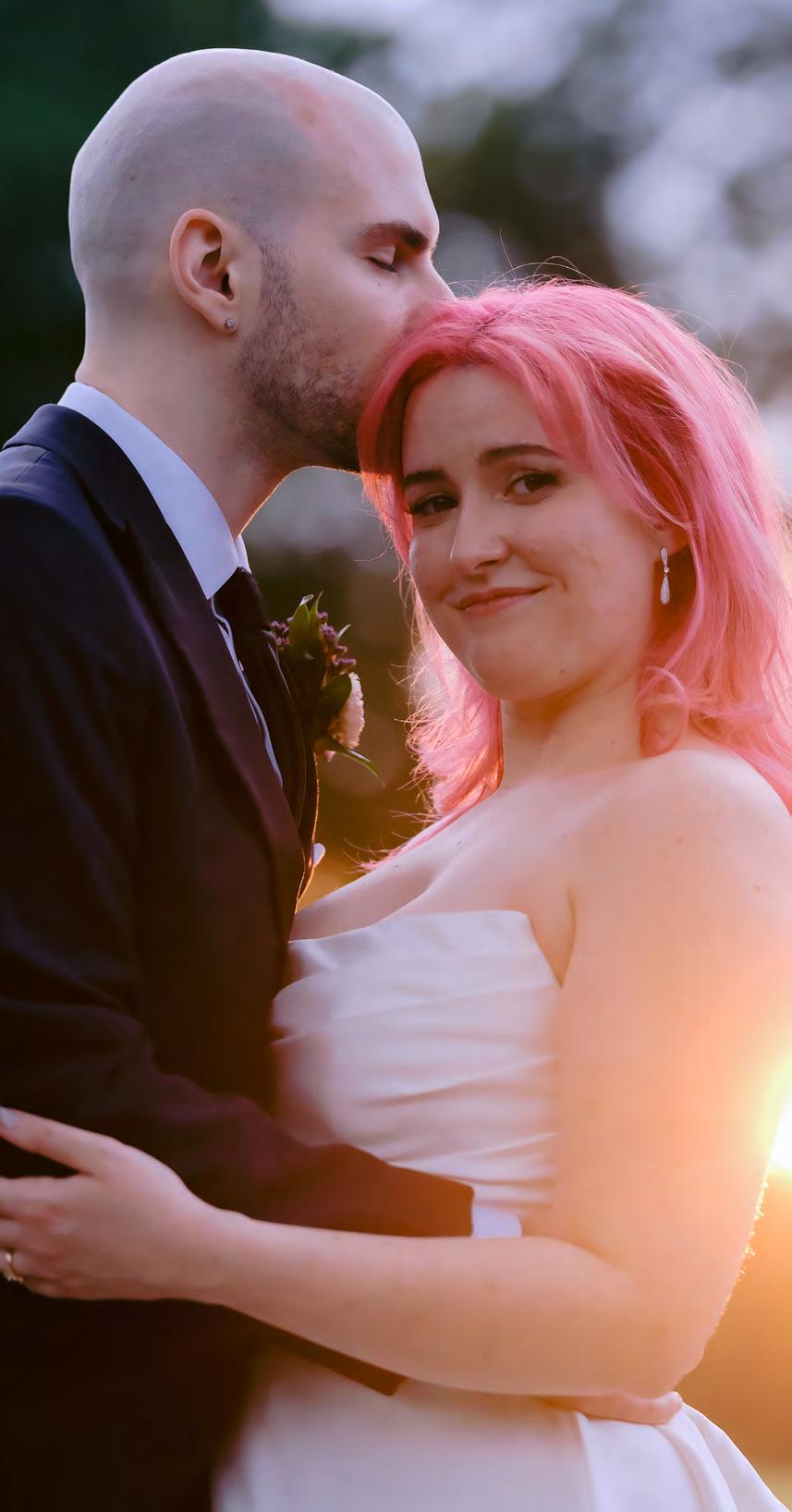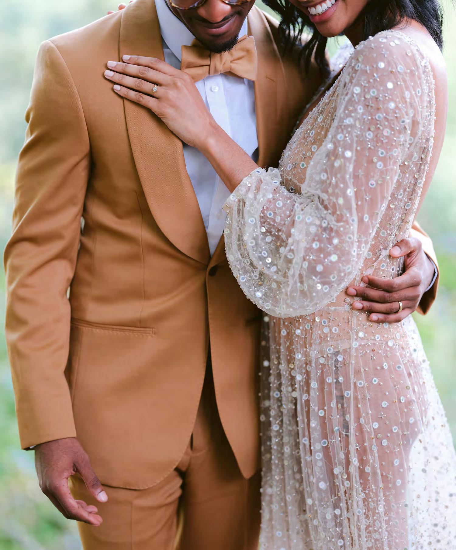 Five years after meeting, the two exchanged vows at a beautiful venue lush with bountiful vines that satisfied their dreams of a European-vineyardstyle wedding, right here in the state they grew up in. A talented caterer honored Caribbean and Italian roots with fusion cuisine including jerk chicken over garlic parmesan risotto, a delicious reflection of their story. Memorial banners and a bouquet locket remembered lost loved ones, along with a table showcasing the wedding photos of generations past.
