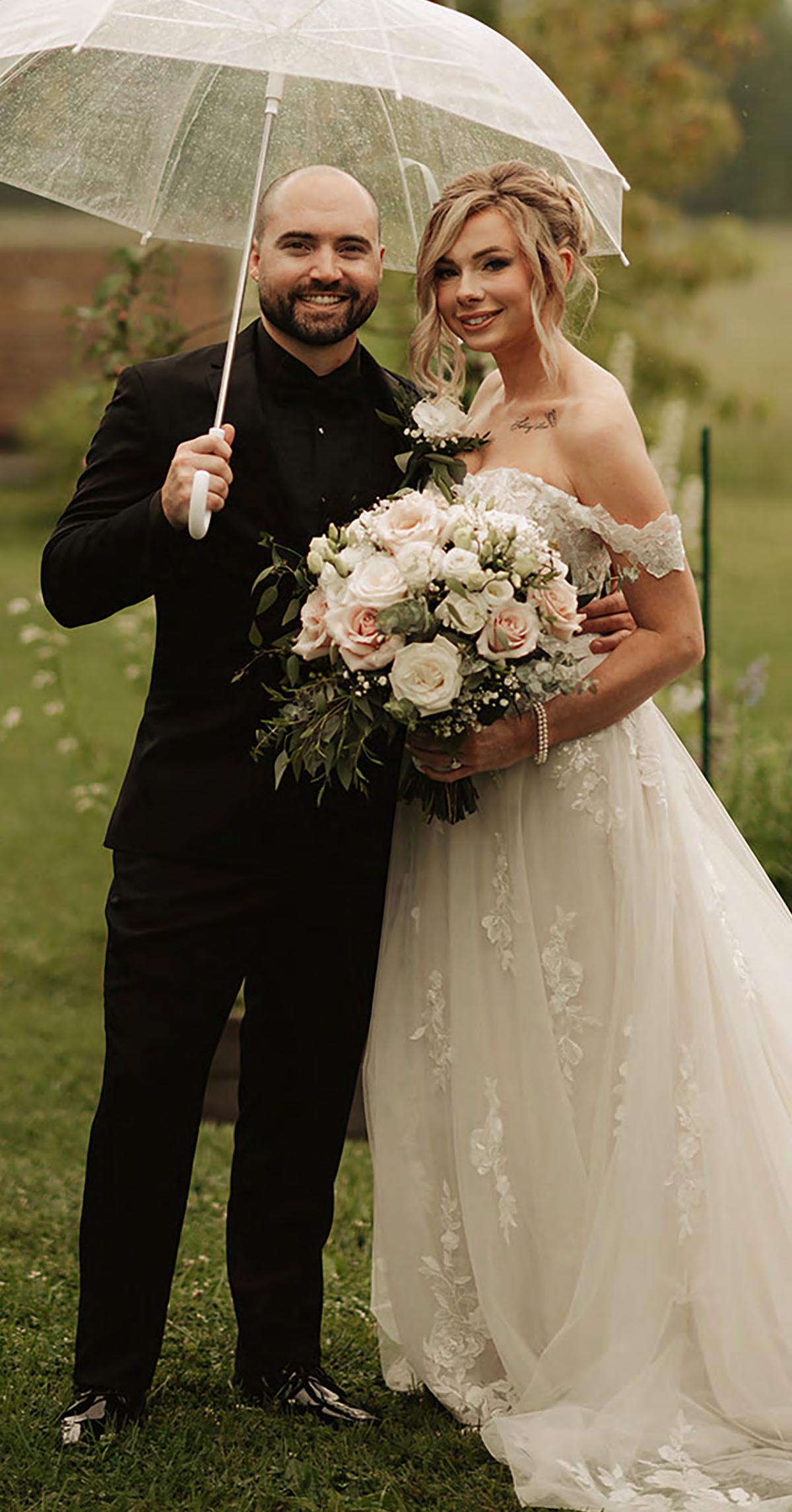 The two staged their wedding in the place Mackenzie grew up and drew on the bounteous wealth of her family’s flower business to create a breathtaking floral display, from bouquets and centerpieces to blooming arches lining the aisle. Close connections contributed to the event, with an uncle on each side ordained to perform the ceremony and a photographer who’d been snapping photos of Mackenzie since high school capturing her next milestone. An espresso martini tower presided over cocktail hour, and an eleven-piece band kept the reception hopping. Friends and family shared in an electric occasion crafted to be absolutely unforgettable.