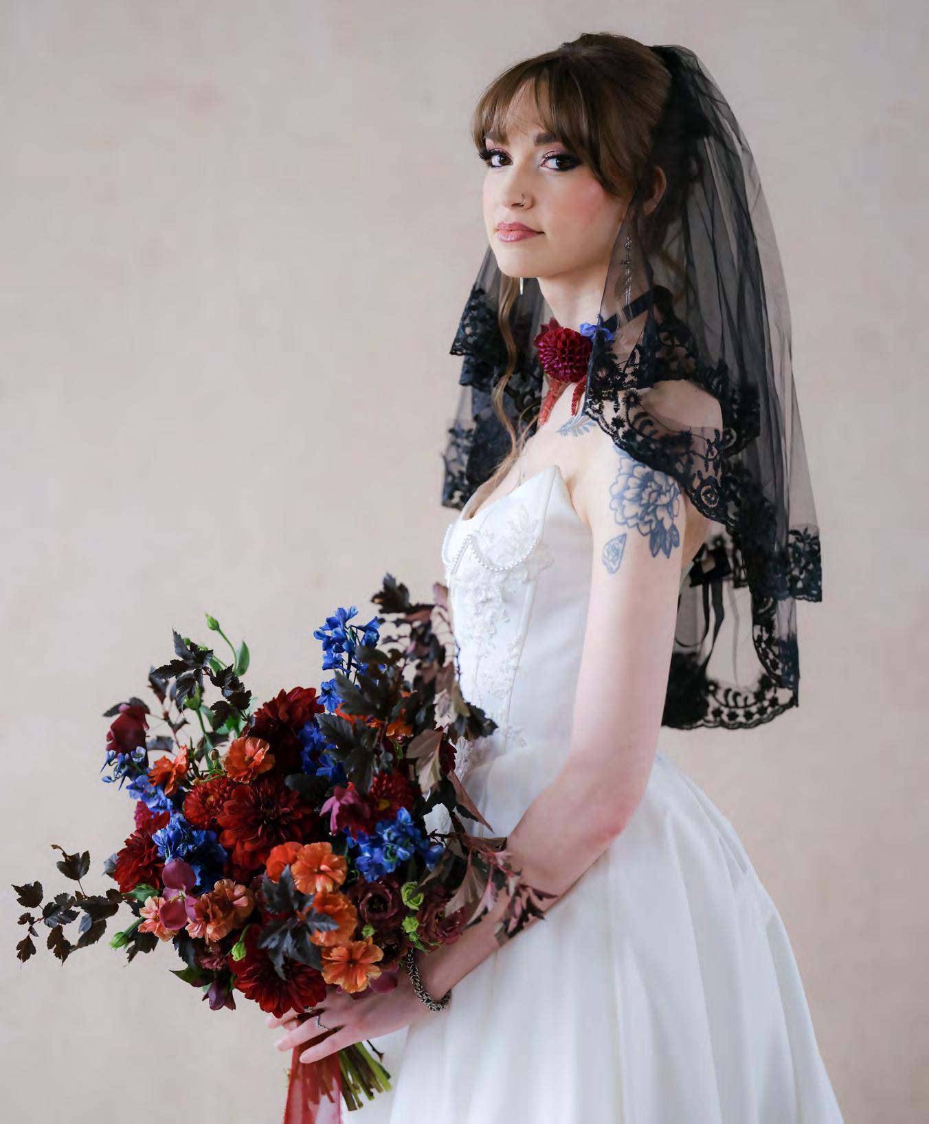 Turn a classic bridal look into something uniquely you with dark but delicate accessories.
