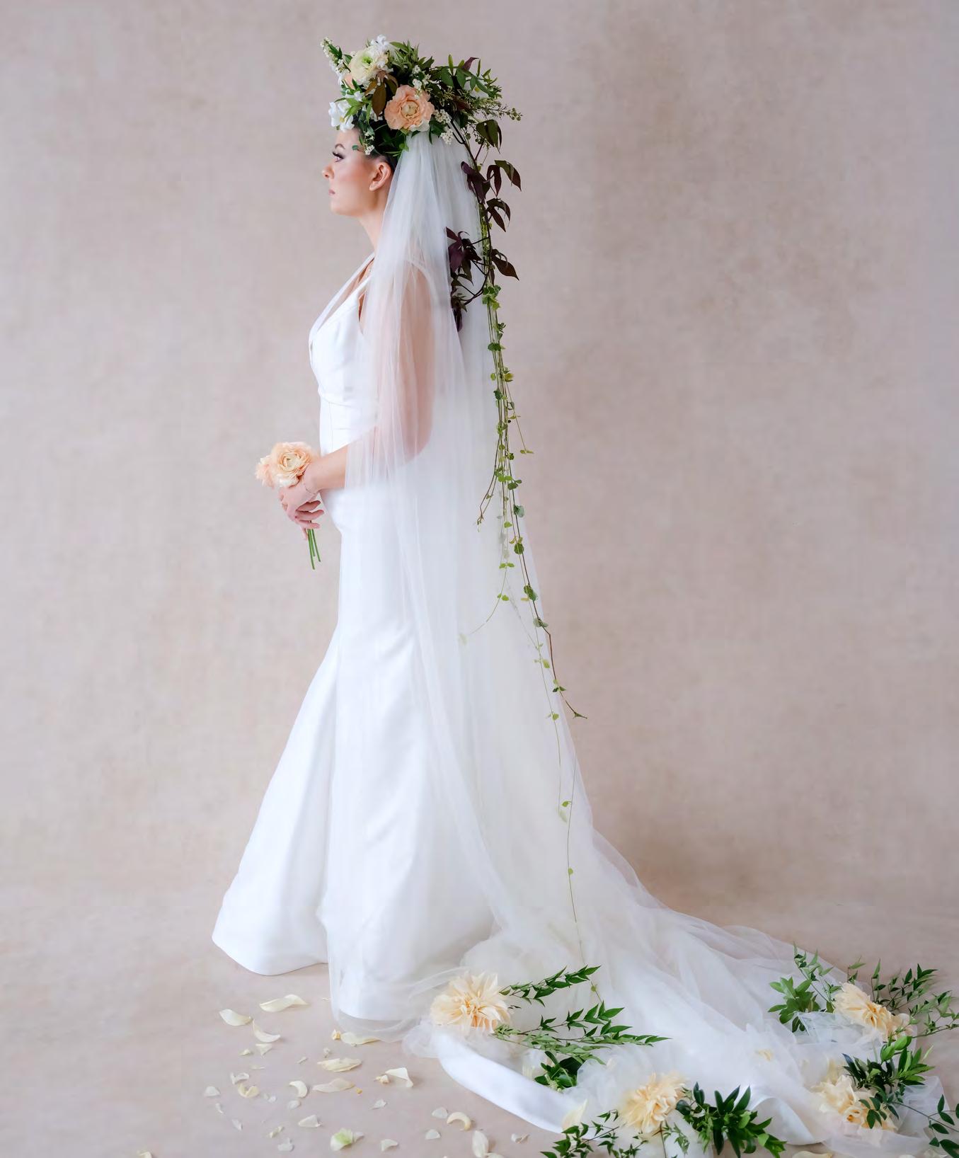 Lean into a regal look with a headpiece that does all the talking. Pair any gown with a veil topped with blooms that trail down to your train.