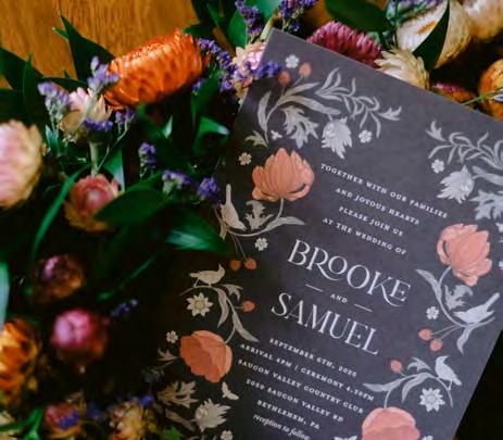 Sarah Petryk and her team have been designing exquisite and transformative weddings in the Lehigh Valley for more than 15 years. Sarah makes the floral planning process feel fun and effortless—like someone talking about their wildest floral dreams with a trusted friend. Her gift is seeing exactly what someone wants for their wedding, and she works to bring each beautiful detail to life. Sarah strives to incorporate sustainable practices in her design, working closely with growers to source stunning blooms tailored to each couple’s style—be it a simple backyard party or an overthe-top ballroom extravaganza. Her delight in the world of flowers and her connection with couples is evident in each wedding she and her team create.