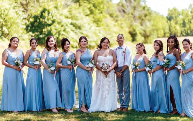 Dresses/Tuxes: Gown: Bridals by Sandra, Nazareth; Jumpsuit from Nadine Merabi; Bridesmaid dresses: Bella Bridesmaids, Allentown; Tuxes: C.E. Roth Formal Wear, Allentown