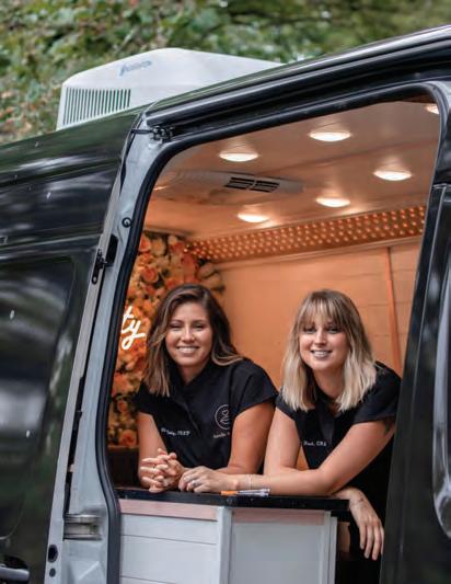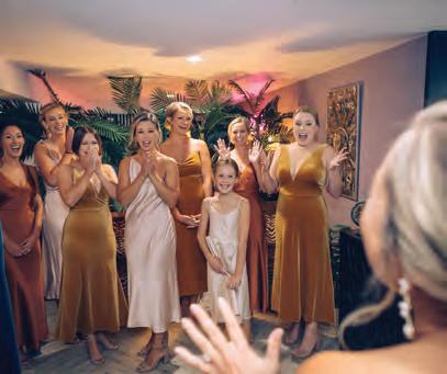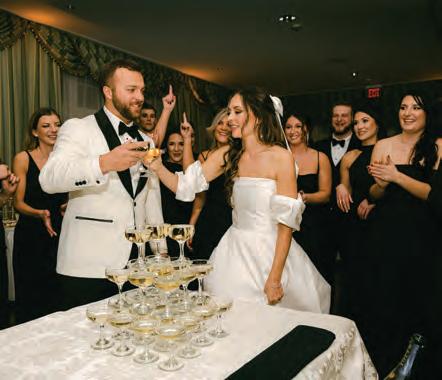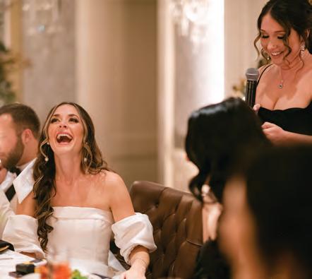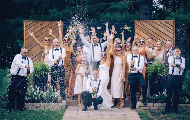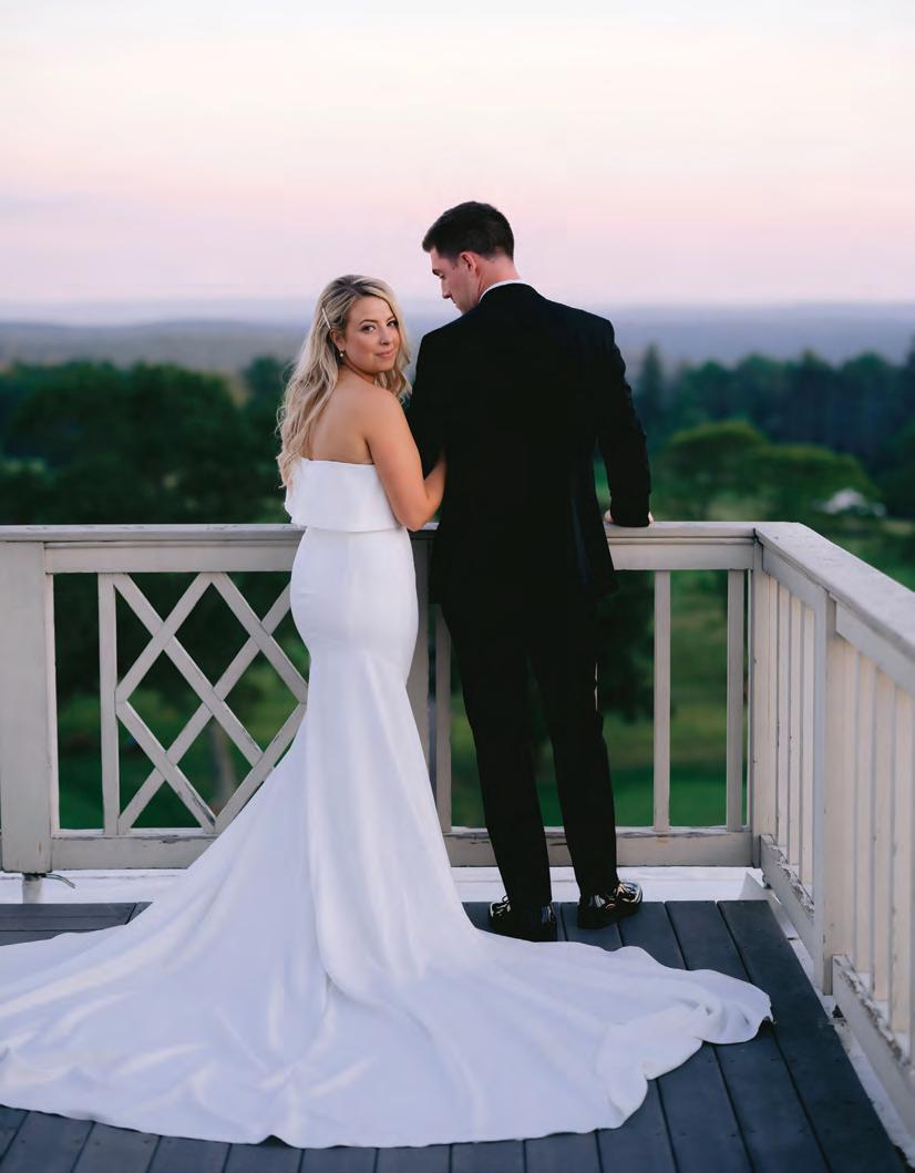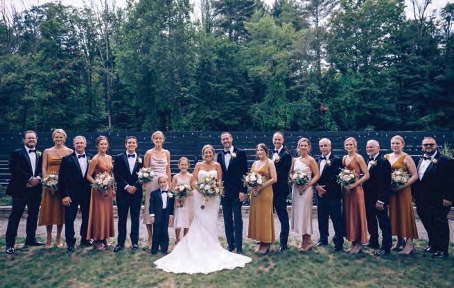 The wedding was preceded by a white-out welcome party for guests in their snowiest attire, and since they called for Black Tie on the hot summer day-of, they provided a fan for each guest. The dance floor was packed and the black-andwhite photo booth gave both a print and social media boomerang option to share the revelry. After hours, guests were treated to a food truck: McDonald’s cuisine and candy to fuel celebrations that continued at Sky Top Tavern. Beyond grateful for their nearest and dearest, Kaitlyn and Josh supplied hangover kits and their favorite Kahuna Treats in each guest’s room.