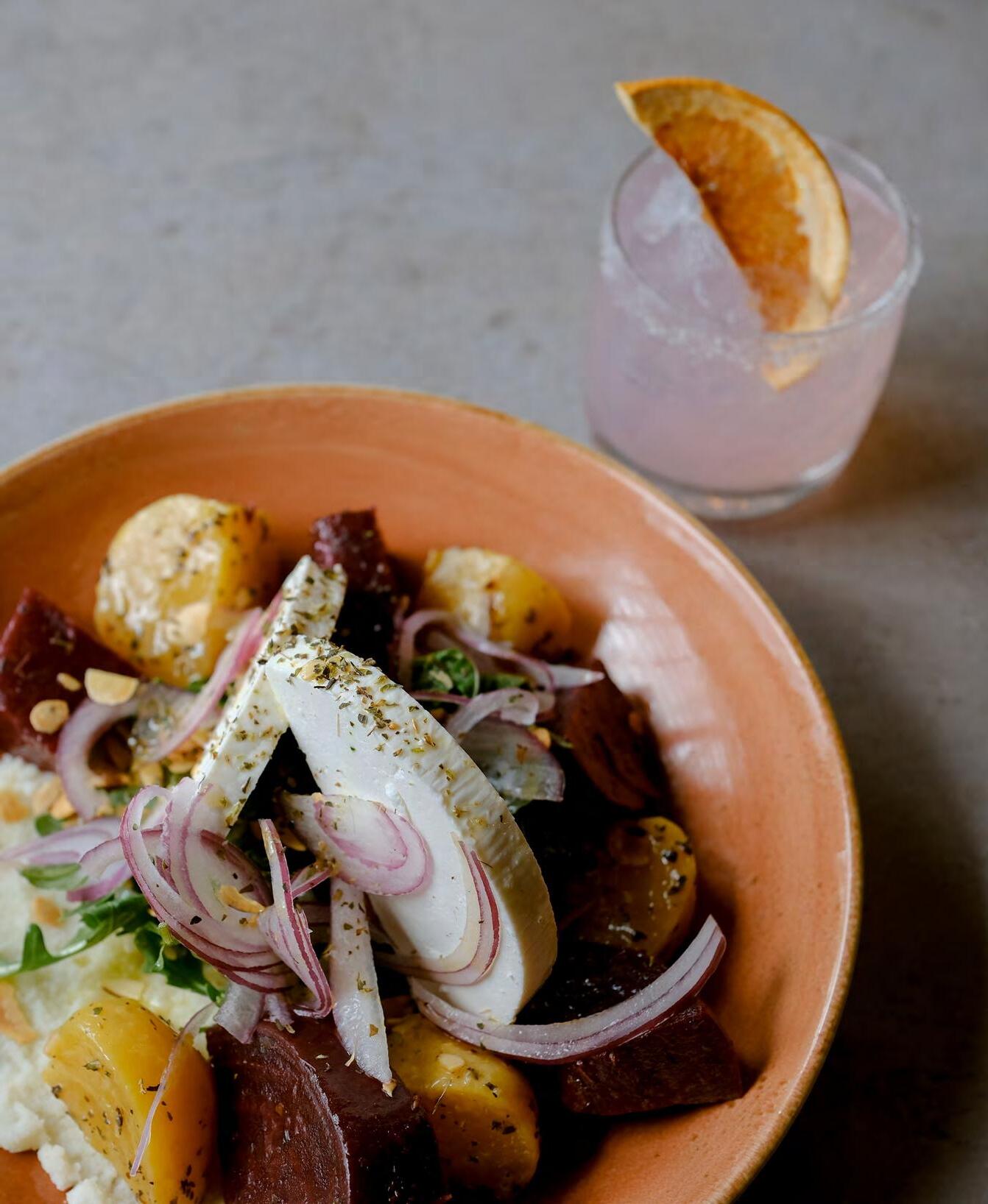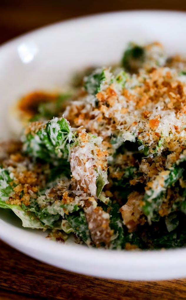 Your typical Caesar salad this is not: Soy-pickled mushrooms dance with Royer Mountain cheese (a cellar-aged Alpine style that is similar to a Comté or Gruyère) atop a mound of Little Gem lettuce. The greens are a key element—the crunchy furls (think a durable mini romaine) are tailor-made to hold up to the creaminess of the dressing. Sourdough garlic breadcrumbs are a brilliant departure from typical croutons. And a soft-boiled egg makes it a robust first course.