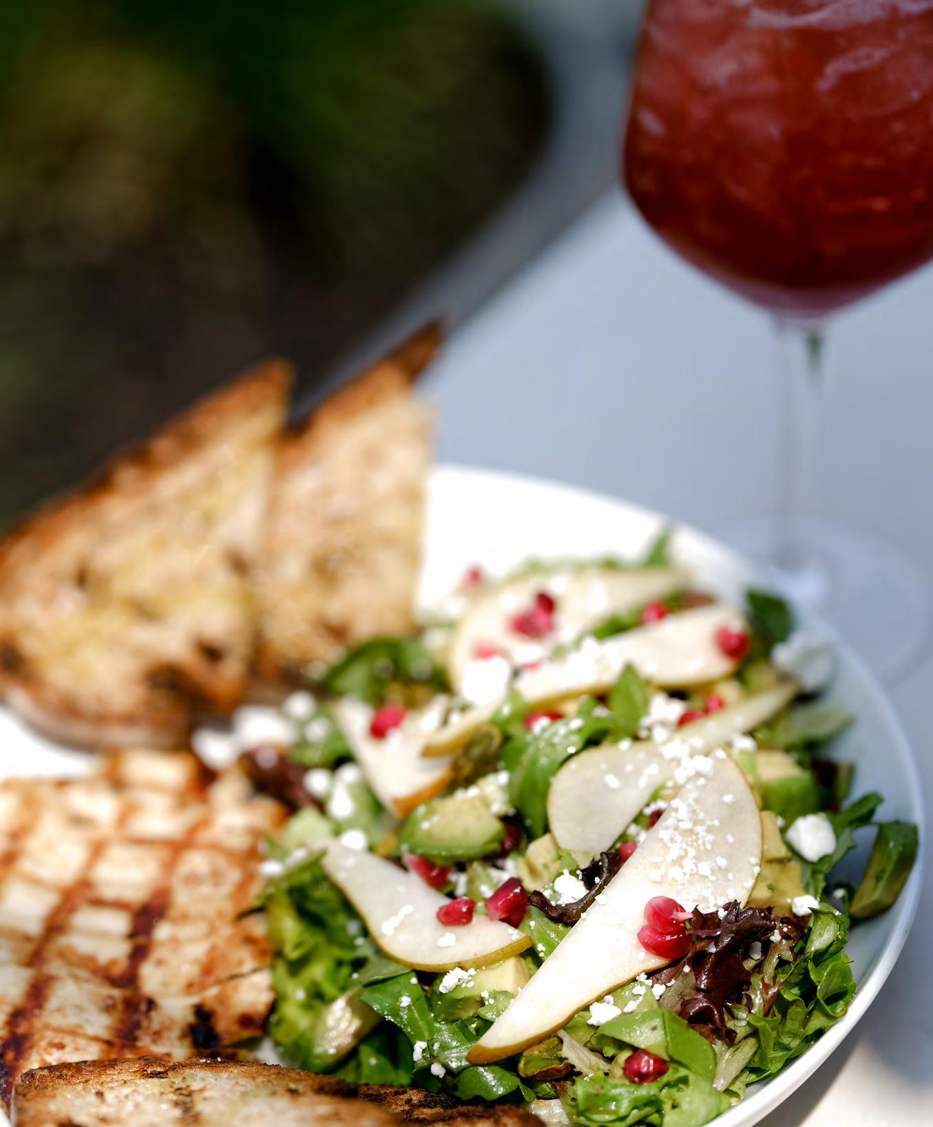 My go-to salad order always has to have a blend of protein, fruits, cheeses and nuts. My favorite is from SURV— their apple and almond salad topped with salmon is always a home run!