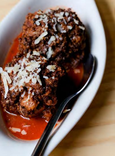 A dish of meatballs, neighborly comfort fare, for sure, makes an especially appropriate menu staple for Bar Torino. The mix of 60 percent pork shoulder and 40 percent beef with sourdough bread yields moist and tender, meaty balls with funky flavor notes from sharp provolone cheese. Served in from-scratch marinara, these meatballs “have a following,”
