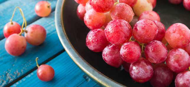 The red pigmentation in grapes comes from a substance called flavonoids. These flavonoids help to reduce the risk of blood clots. Grapes can be frozen and eaten as a thirst-quenching measure for patients on a liquid restricted diet.