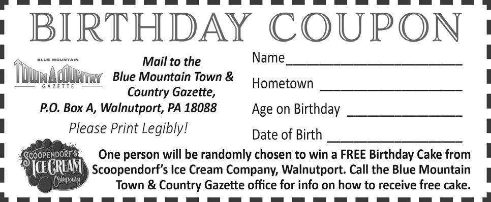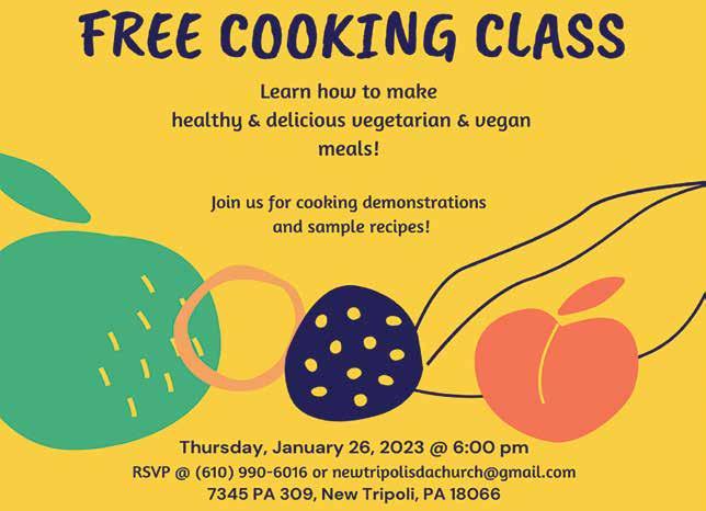 FREE VOLUME 37, NO. 8 JANUARY 19, 2023 DISTRIBUTING 11,000 COPIES TO LEHIGH, CARBON, AND NORTHAMPTON COUNTIES SINCE 1985 askus@townandcountrygazette.com • 610-767-9600 NEXT ISSUE: FEBRUARY 2 • DEADLINE: WEDNESDAY, JANUARY 25