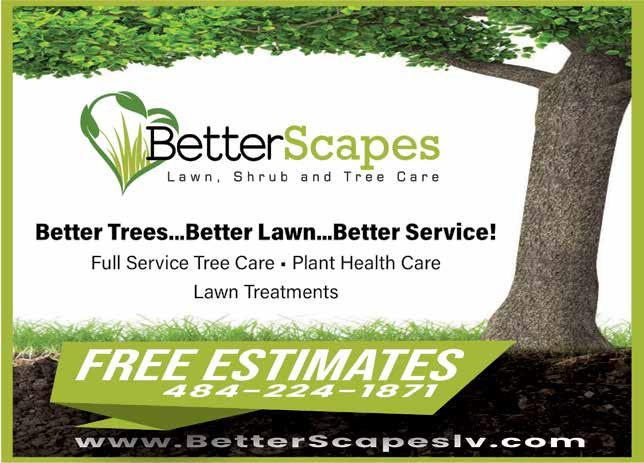 Service The area’s only ISA Board Certified Master Arborist Specializing in restoring & maintaining the health, beauty & value of landscape trees • Structural, directional & maintenance pruning • Root problem diagnosis & mitigation • Pest & disease diagnosis & treatment • Hazard tree evaluations & mitigation • Consultations-new construction & existing landscape trees • Tree and stump removal Glenn A. Myster www.mystertree.com (610) 262-4150 PDO288B BOARD CERTIFIED MASTER ARBORIST Interior & Exterior Improvements Mel Fritz Construction •Additions •Kitchens •Baths •Siding •Windows •Doors PA#025123 610-767-7085 Danielsville, PA 3131 Applebutter Rd, Danielsville, PA 18038 610-674-9335 • 570-710-7052 attenboroughpaving@me.com https://attenboroughpaving.com/ RESIDENTIAL • COMMERCIAL • SEALCOATING INSTALLATION • FREE ESTIMATES HIC Licensed, Insured WASKO IRON WORKS Powder Coated Railings Steel or Aluminum Ornamental & Miscellaneous Iron Works 5158 Spring Mill Rd., Whitehall, PA 18052 (along Rt. 145) (610) 597-5510 | PA Lic. 034120