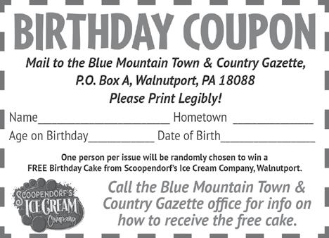 The Blue Mountain Town & Country Gazette is published the first and third Thursday of the month. The Gazette does not assume responsibility for an ad beyond the cost of the ad itself; we cannot be responsible for typographic errors. We reserve the right to reject any article or advertisement thought to be offensive or not contributing to the needs of the community. Signed letters will be printed at the discretion of the editor. News items and ads should be submitted by 4 p.m. on the deadline date, located on the bottom of the front cover. Business Hours: Call for an appointment