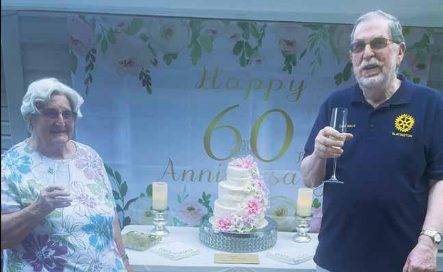 Slatedale Couple Clarence & Florence Smith celebrated their 60th Wedding Anniversary on June 1st. After his brother Nick’s bench dedication, everyone gathered across the street at the home of Monica Sellers for a surprise dinner party. Family, friends and Rotarians gathered for a lovely dinner celebration. A toast was made for continued good health, happiness and being there for each other. After dinner and drinks the couple cut their cake in a joyful celebration. A lovely evening was had by all.