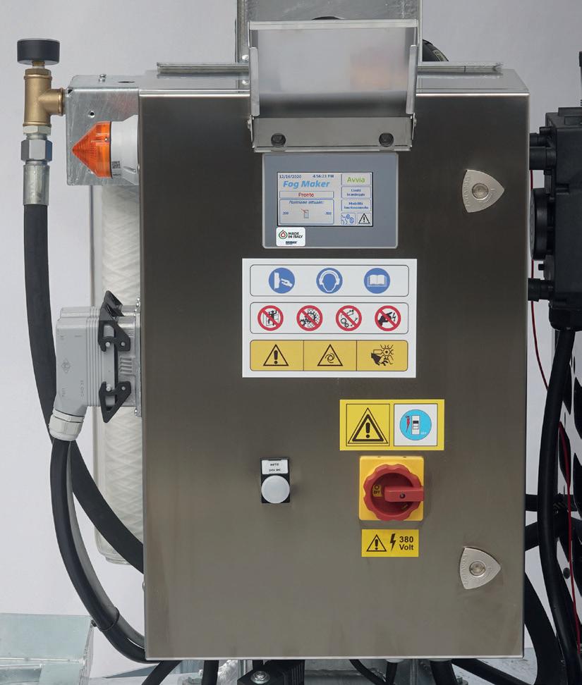 • Electrical panel complete with PLC with cyclic timer, weekly programmer, tilt pulse counter, fan start and flashing lights