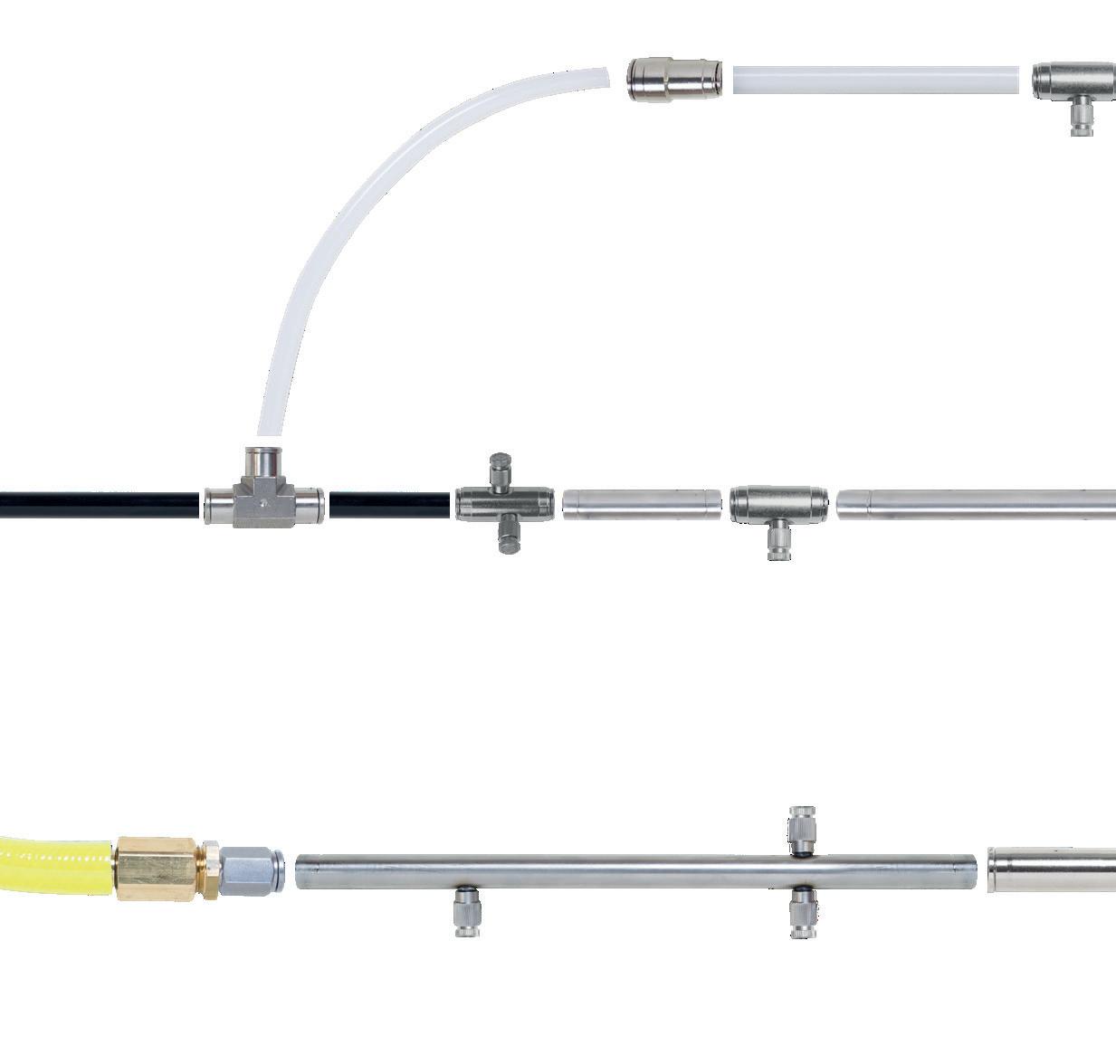 Una rivoluzione per gli impianti di nebulizzazione in linea: - semplicità di assemblaggio e montaggio delle linee; - 80% di tempo risparmiato per assemblare la linea, rispetto al sistema ad ogiva; - unico raccordo slip lock sia per tubi in acciaio inox che per tubi in poliammide; - ora è possibile comporre linee usando tubi di diametri diversi.