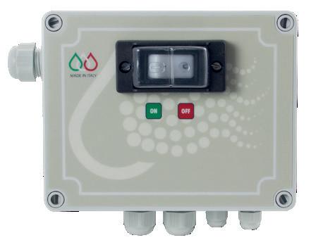 Quadro elettrico monofase 230V-50Hz per motopompe misting con potenza massima di 1200W Dimensioni: 240x190x90mm (staffa supporto esclusa) Completo di cablaggi elettrici per: