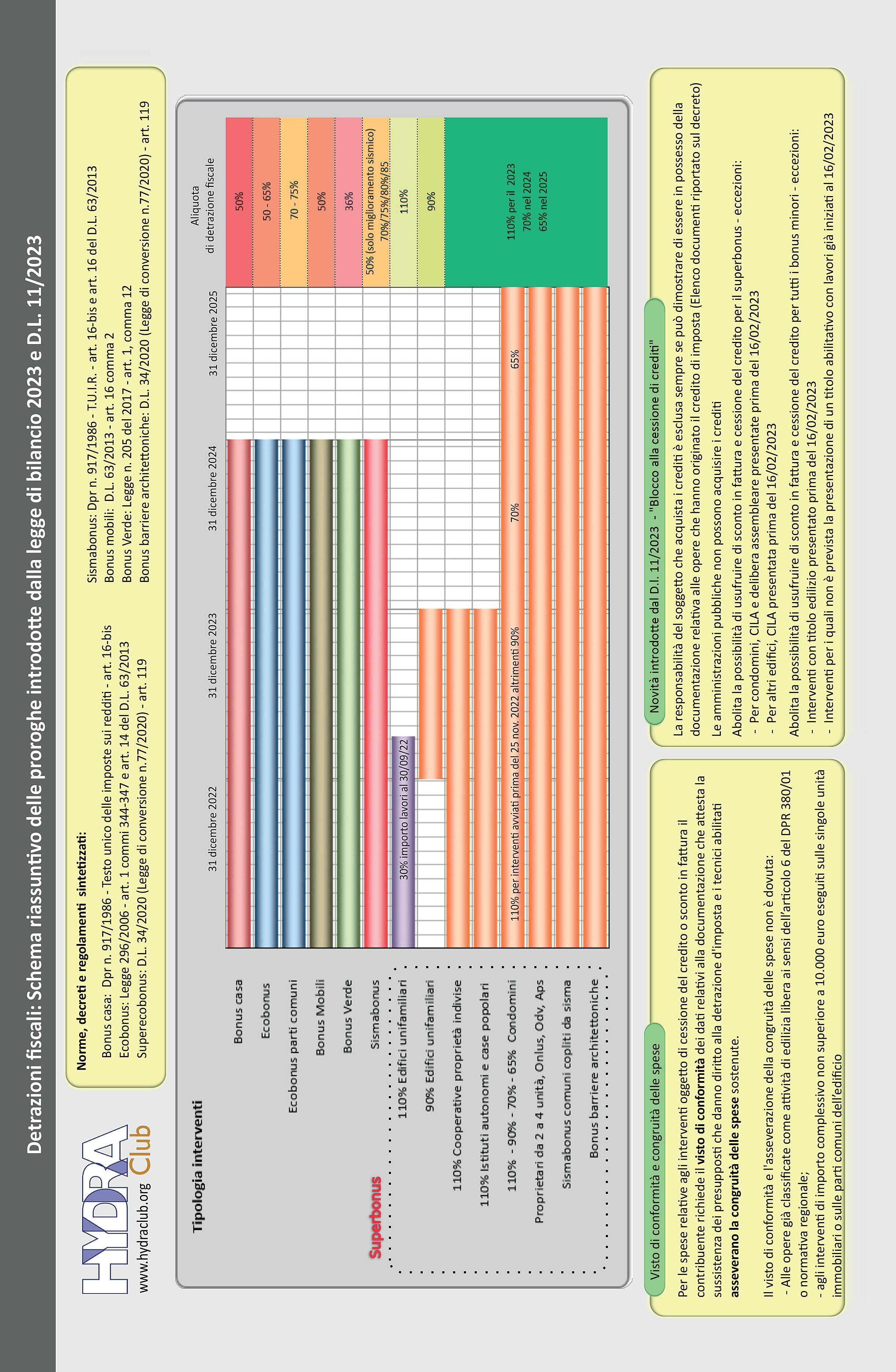 Nello schema di pagina seguente sono sintetizzati i bonus attualmente in vigore, da utilizzare con le classiche detrazioni, e lo schema delle casistiche per cui è ancora utilizzabile la cessione del credito.