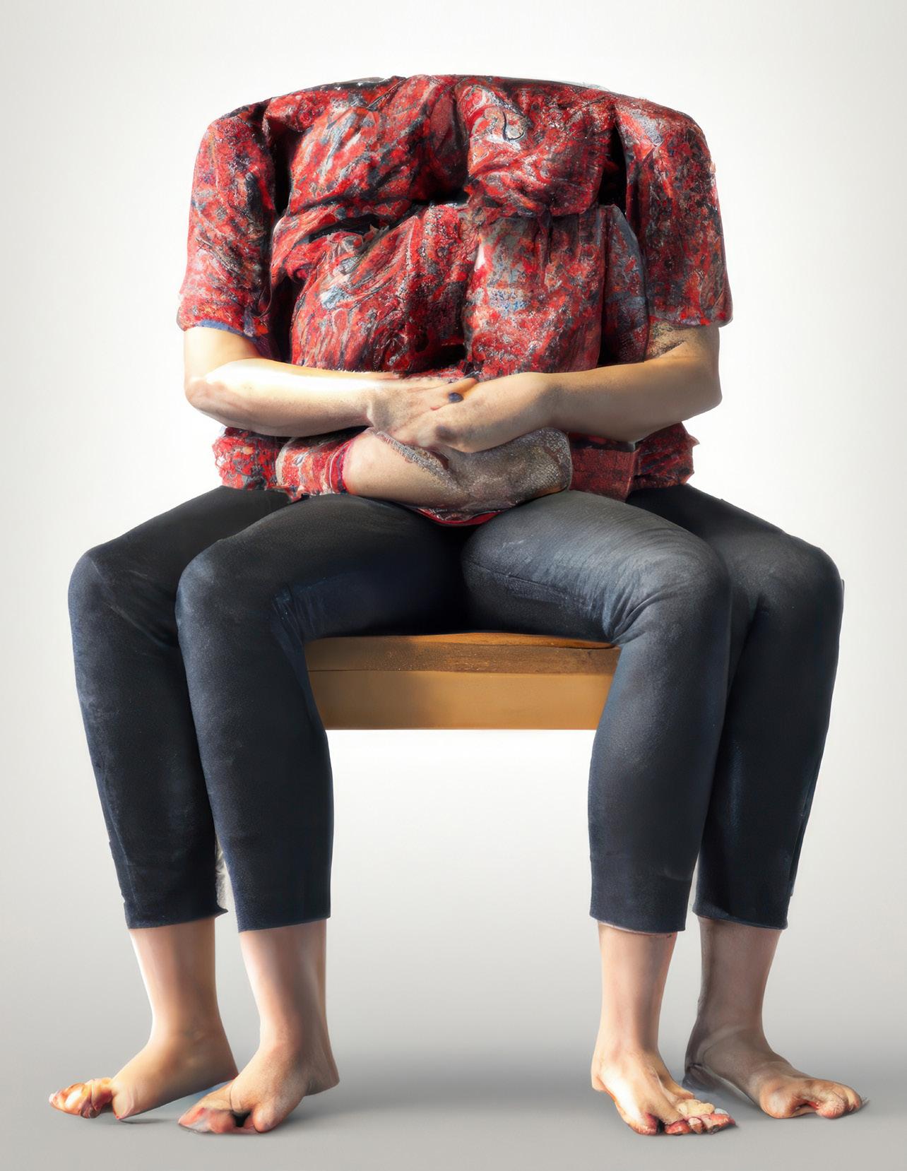 Opposite: On the Moon by Eric Ye, S/IDSA. Image generated in DALL-E using the prompt “An astronaut is seating on a chair which is made from pink foam spray chair in style of blobism, the background is the moon surface and universe.”