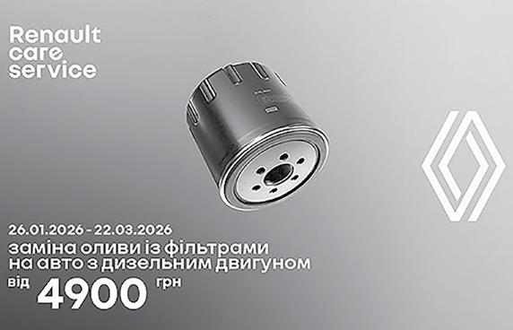 • Рекомендована акційна вартість першого ТО для дизельних Logan\Sandero\Duster у період 26.01.2026-22.03.2026.