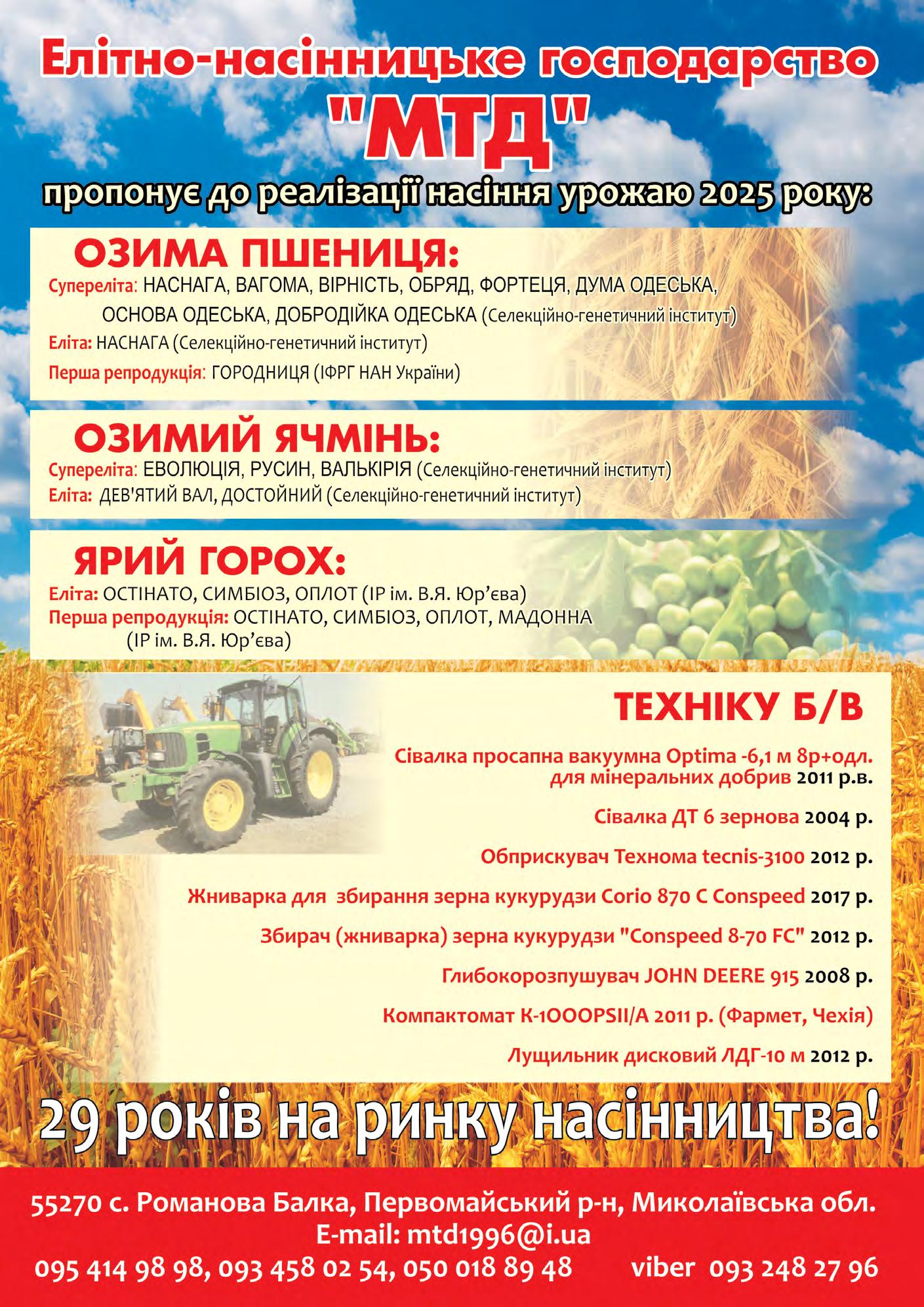 соняшниковий, ячмінний та пшеничний сектори відновляться до 2040 ро-
