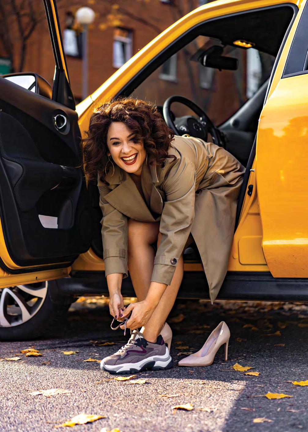 • Взуття. Це найважливіший елемент. Обирайте взуття на плоскій підошві, яке щільно прилягає до ноги. Ідеальний варіант – кросівки, мокасини або лофери. У салоні авто краще тримати