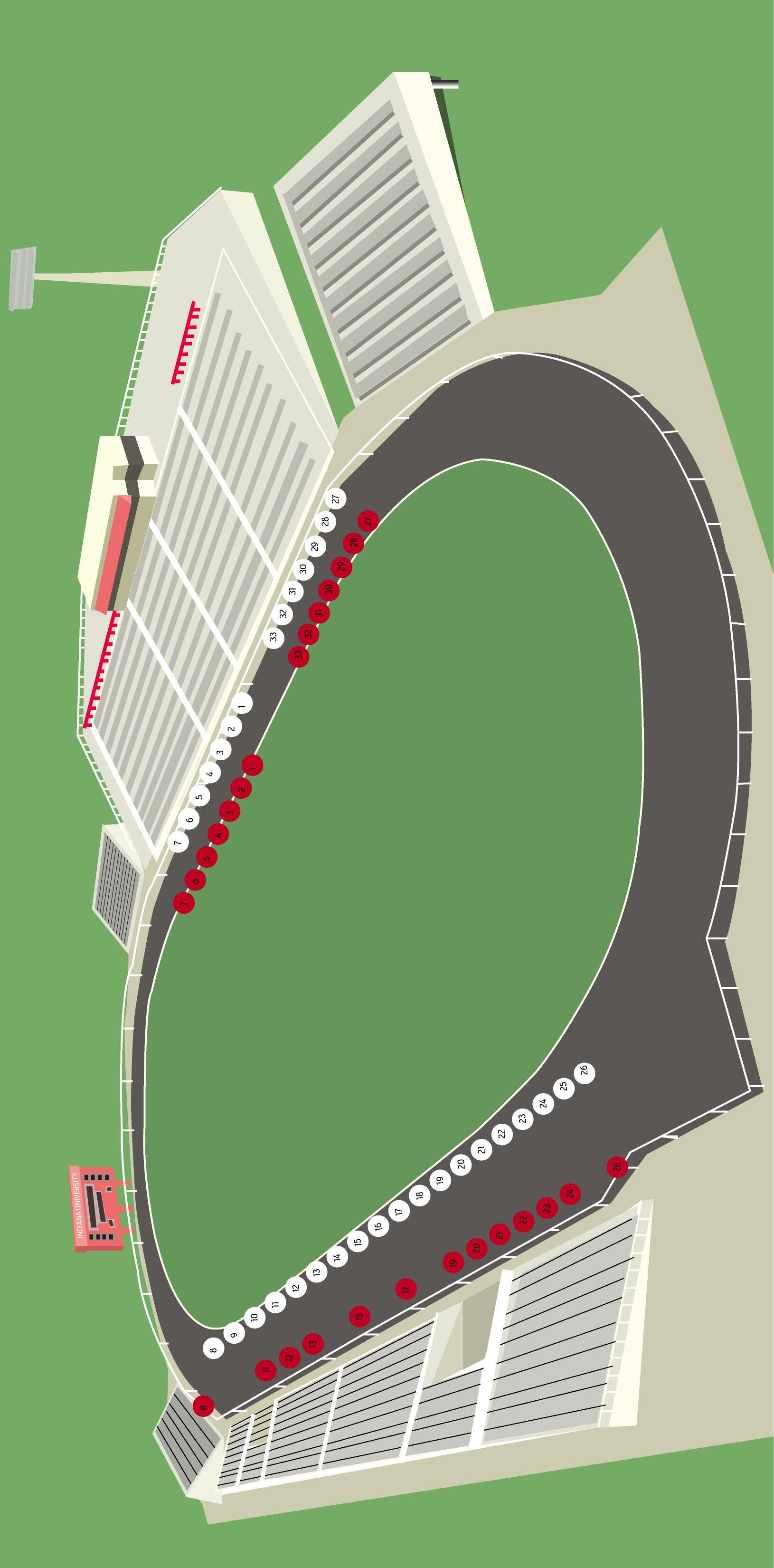 riders will be mounted and ready five minutes before the pace lap, after which no crew member will be allowed on the inside of the track.