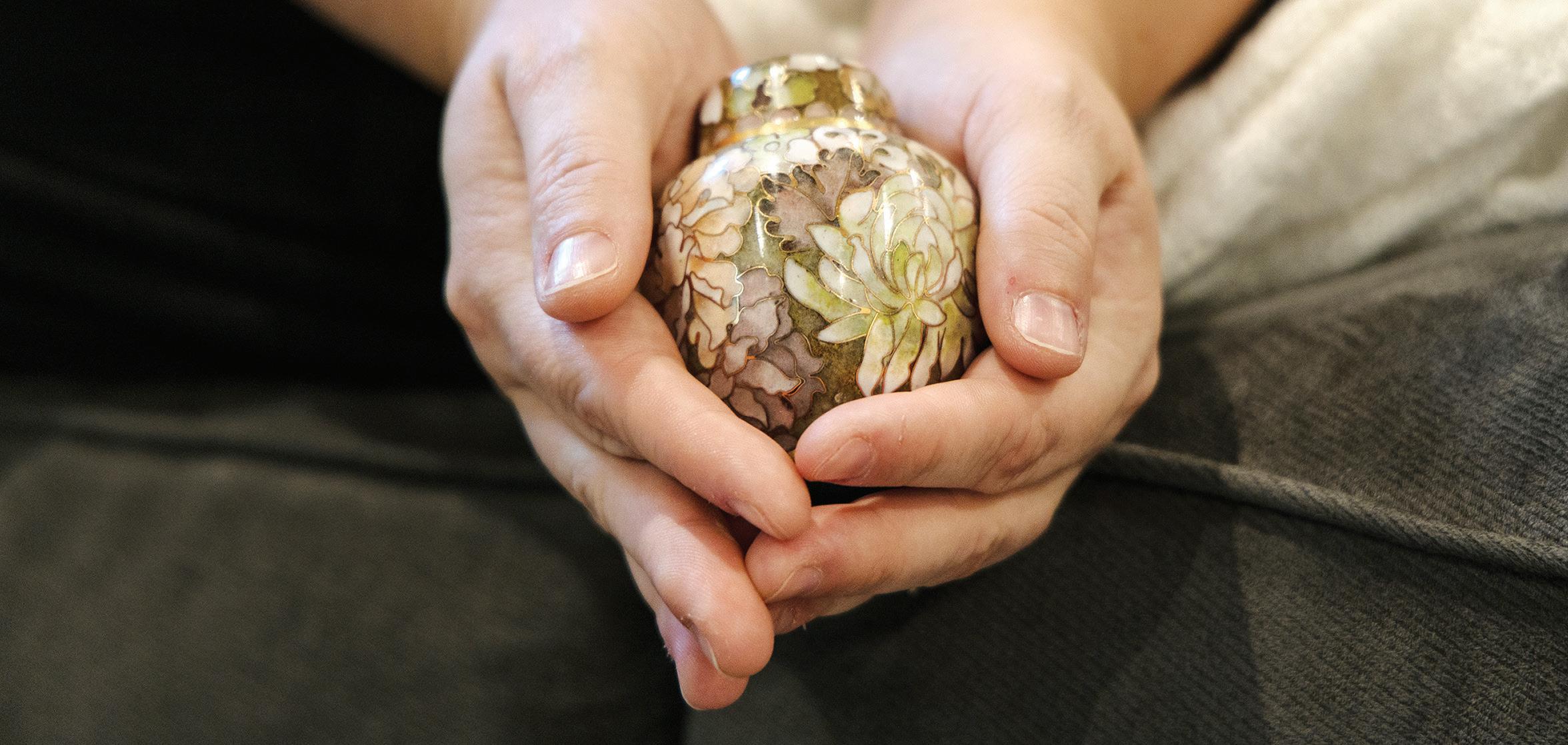 Danielle Spry holds her daughter Charlotte's urn in her hands Oct. 12, 2024, in Plainfield, Indiana. Danielle decided to terminate her pregnancy after learning her daughter had serious health complications.